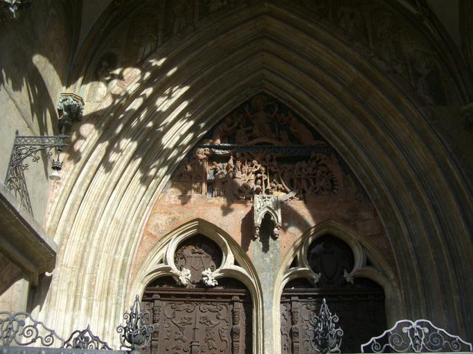 Keywords: portal archway southeast portal bridal portal court portal gothic tracery relief frieze pointed arch input wooden door münster ulm architecture decorated portal carving ulm cathedral ornament decorated church door
