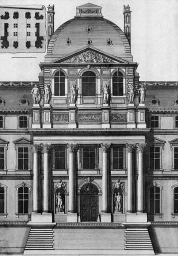 | Keywords: Porte de l'entrée du Chateau du Louvre.jpg  Artwork Author info Louis Le Vau architect Entrance of the mansion of the Louvre in or near Paris by the river built under the direction of Monsieur le Vau 1670 etching / engraving Institution LoC object history exhibition history credit line This image has been cropped The original image from the Library of Congress shows that the engraving is part of a bound volume and has inscriptions similar to the state of the print seen in exemplars of the Grand Marot It may be a photograph of the Grand Marot but its provenance or which exemplar is not indicated accession number LOC-image cph 3c04628 Porte de l'entrée du Chateau du Louvre faict par Le Vau Marot “ Library of Congress tif <gallery> File L'Architecture française Marot BnF RES-V-371 170r-f367 Louvre Porte de l'entrée du côté de la Rivière fait par Le Vau jpg Grand Marot<br />BnF RES-V-371 File L'Architecture française Marot BnF RES-V-371 170r-f367 Louvre Porte de l'entrée du côté de la Rivière fait par Le Vau adjusted jpg Grand Marot<br />BnF RES-V-371 adjusted version File L'Architecture française Marot - Damiron 1967 ex117-193 Louvre Porte de l'entrée du côté de la Rivière fait par Le Vau jpg Grand Marot<br />Inha Fol Est 443 File Louvre - Avant-corps de l'ancienne façade du côté de la rivière exécutée sur les desseins de Le Veau - Architecture françoise Tome4 Livre6 Pl14 jpg J -F Blondel's Architecture françoise 1756; 1904 reimpression </gallery> PD-100 Images of Paris from the Library of Congress South facade of the Renaissance Louvre 1665 Le Veau Pavilion Engravings of buildings in Paris Grand Marot |