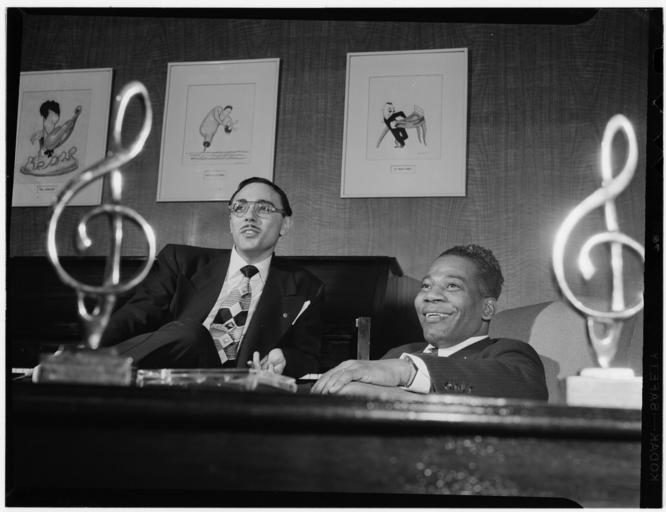 | Keywords: (Portrait of Bernie Benjamin and George (George David) Weiss in their office, New York, N.Y., ca. Apr. 1947) (LOC) (4888662550).jpg Gottlieb William P 1917- photographer Portrait of Bernie Benjamin and George George David Weiss in their office New York N Y ca Apr 1947 1 negative b w ; 3 1/4 x 4 1/4 in Notes Gottlieb Collection Assignment No 027 Reference print available in Music Division Library of Congress Purchase William P Gottlieb Forms part of William P Gottlieb Collection Library of Congress In Friendship pays dividends Down Beat v 14 no 9 Apr 23 1947 p 15 Subjects Benjamin Bernie Weiss George George David Composers--1940-1950 Format Portrait photographs--1940-1950 Group portraits--1940-1950 Film negatives--1940-1950 Rights Info Mr Gottlieb has dedicated these works to the public domain but rights of privacy and publicity may apply http //lcweb2 loc gov/diglib/ihas/html/gottlieb/gottlieb-copyright html lcweb2 loc gov/diglib/ihas/html/gottlieb/gottlieb-copyrig Repository negative Library of Congress Prints Photographs Division Washington D C 20540 USA http //hdl loc gov/loc pnp/pp print hdl loc gov/loc pnp/pp print reference print Library of Congress Music Division Washington D C 20540 USA http //loc gov/rr/perform/ loc gov/rr/perform/ Part Of William P Gottlieb Collection DLC 99-401005 General information about the Gottlieb Collection is available at http //lcweb2 loc gov/diglib/ihas/html/gottlieb/gottlieb-home html lcweb2 loc gov/diglib/ihas/html/gottlieb/gottlieb-home html Persistent URL http //hdl loc gov/loc music/gottlieb 00651 hdl loc gov/loc music/gottlieb 00651 Call Number LC-GLB13- 0065<br/> PD-Gottlieb https //www flickr com/photos/library_of_congress/4888662550/ Portrait of Bernie Benjamin and George George David Weiss in their office New York N Y ca Apr 1947 LOC https //www flickr com/people/8623220 N02 The Library of Congress http //www loc gov/rr/print/195_copr html noknown The Library of Congress Flickr Commons Flickr-no known copyright restrictions The Library of Congress https //flickr com/photos/8623220 N02/4888662550 2015-09-01 22 56 27 pd Photographs by William P Gottlieb |
