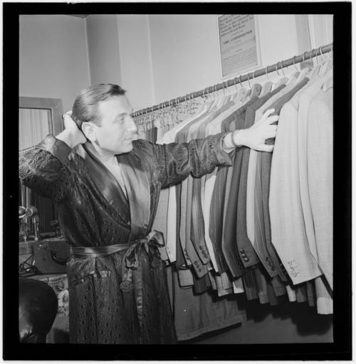 Keywords: (Portrait of Charlie Spivak, New York, N.Y.(?), ca. Oct. 1946) (LOC) (5436428186).jpg Gottlieb William P 1917- photographer Portrait of Charlie Spivak New York N Y ca Oct 1946 1 negative b w ; 2 1/4 x 2 1/4 in Caption from Down Beat Hearing a rumor that Charlie Spivak has more suits than Ellington staff lensman Bill Gottlieb hustled over to the sweetest trumpetman's dressing room and made this shot of Charlie and his 28 suits to prove it But like everyone else he can only wear one at a time Notes Gottlieb Collection Assignment No 293 Purchase William P Gottlieb Forms part of William P Gottlieb Collection Library of Congress In Spivak's wardrobe extensive Down Beat v 13 no 22 Oct 21 1946 p 12 Subjects Spivak Charlie Jazz musicians--1940-1950 Trumpet players--1940-1950 Format Portrait photographs--1940-1950 Film negatives--1940-1950 Rights Info Mr Gottlieb has dedicated these works to the public domain but rights of privacy and publicity may apply http //lcweb2 loc gov/diglib/ihas/html/gottlieb/gottlieb-copyright html lcweb2 loc gov/diglib/ihas/html/gottlieb/gottlieb-copyrig Repository negative Library of Congress Prints Photographs Division Washington D C 20540 USA http //hdl loc gov/loc pnp/pp print hdl loc gov/loc pnp/pp print Part Of William P Gottlieb Collection DLC 99-401005 General information about the Gottlieb Collection is available at http //lcweb2 loc gov/diglib/ihas/html/gottlieb/gottlieb-home html lcweb2 loc gov/diglib/ihas/html/gottlieb/gottlieb-home html Persistent URL http //hdl loc gov/loc music/gottlieb 15161 hdl loc gov/loc music/gottlieb 15161 Call Number LC-GLB23- 1516<br/> PD-Gottlieb https //www flickr com/photos/library_of_congress/5436428186/ Portrait of Charlie Spivak New York N Y ca Oct 1946 LOC https //www flickr com/people/8623220 N02 The Library of Congress http //www loc gov/rr/print/195_copr html noknown The Library of Congress Flickr Commons Flickr-no known copyright restrictions The Library of Congress https //flickr com/photos/8623220 N02/5436428186 2015-09-02 00 10 24 pd Suits Photographs by William P Gottlieb Charlie Spivak (Portrait of Charlie Spivak, New York, N.Y.(?), ca. Oct. 1946) (LOC) (5436428186).jpg Gottlieb William P 1917- photographer Portrait of Charlie Spivak New York N Y ca Oct 1946 1 negative b w ; 2 1/4 x 2 1/4 in Caption from Down Beat Hearing a rumor that Charlie Spivak has more suits than Ellington staff lensman Bill Gottlieb hustled over to the sweetest trumpetman's dressing room and made this shot of Charlie and his 28 suits to prove it But like everyone else he can only wear one at a time Notes Gottlieb Collection Assignment No 293 Purchase William P Gottlieb Forms part of William P Gottlieb Collection Library of Congress In Spivak's wardrobe extensive Down Beat v 13 no 22 Oct 21 1946 p 12 Subjects Spivak Charlie Jazz musicians--1940-1950 Trumpet players--1940-1950 Format Portrait photographs--1940-1950 Film negatives--1940-1950 Rights Info Mr Gottlieb has dedicated these works to the public domain but rights of privacy and publicity may apply http //lcweb2 loc gov/diglib/ihas/html/gottlieb/gottlieb-copyright html lcweb2 loc gov/diglib/ihas/html/gottlieb/gottlieb-copyrig Repository negative Library of Congress Prints Photographs Division Washington D C 20540 USA http //hdl loc gov/loc pnp/pp print hdl loc gov/loc pnp/pp print Part Of William P Gottlieb Collection DLC 99-401005 General information about the Gottlieb Collection is available at http //lcweb2 loc gov/diglib/ihas/html/gottlieb/gottlieb-home html lcweb2 loc gov/diglib/ihas/html/gottlieb/gottlieb-home html Persistent URL http //hdl loc gov/loc music/gottlieb 15161 hdl loc gov/loc music/gottlieb 15161 Call Number LC-GLB23- 1516<br/> PD-Gottlieb https //www flickr com/photos/library_of_congress/5436428186/ Portrait of Charlie Spivak New York N Y ca Oct 1946 LOC https //www flickr com/people/8623220 N02 The Library of Congress http //www loc gov/rr/print/195_copr html noknown The Library of Congress Flickr Commons Flickr-no known copyright restrictions The Library of Congress https //flickr com/photos/8623220 N02/5436428186 2015-09-02 00 10 24 pd Suits Photographs by William P Gottlieb Charlie Spivak