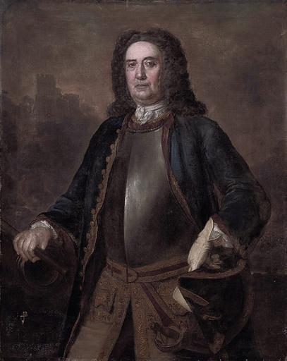 | Keywords: Portrait of Major General Richard St George by Stephen Slaughter (London 1697-1765).jpg en Portrait of Major General Richard St George 1670-1755 in a blue coat and breast plate a tricorn in his left hand his right hand on a canon a castle beyond inscribed signed and dated 'Richard S George Esq Major General of His Majestys Forces Aetatis Sua 74 Stepn Slaughter Pinx Dublin 1744 ' lower left oil on canvas unframed 127 x 101 6 cm http //www christies com/Lotfinder/lot_details aspx from searchresults intObjectID 5366643 sid 2f35cd25-1c59-44b9-81aa-fa049df8a2b7 Christie's Stephen Slaughter London 1697-1765 1744 PD-old-100 Stephen Slaughter |