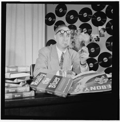 | Keywords: (Portrait of Mezz Mezzrow in his office, New York, N.Y., ca. Nov. 1946) (LOC) (4843138435).jpg Gottlieb William P 1917- photographer Portrait of Mezz Mezzrow in his office New York N Y ca Nov 1946 1 negative b w ; 2 1/4 x 2 1/4 in Notes Gottlieb Collection Assignment No 227 Reference print available in Music Division Library of Congress Purchase William P Gottlieb Forms part of William P Gottlieb Collection Library of Congress In Mezz blows mess of mellow words Down Beat v 13 no 23 Nov 4 1946 p 4 Subjects Mezzrow Mezz 1899-1972 Jazz musicians--1940-1950 Clarinetists--1940-1950 Format Portrait photographs--1940-1950 Film negatives--1940-1950 Rights Info Mr Gottlieb has dedicated these works to the public domain but rights of privacy and publicity may apply http //lcweb2 loc gov/diglib/ihas/html/gottlieb/gottlieb-copyright html lcweb2 loc gov/diglib/ihas/html/gottlieb/gottlieb-copyrig Repository negative Library of Congress Prints Photographs Division Washington D C 20540 USA http //hdl loc gov/loc pnp/pp print hdl loc gov/loc pnp/pp print reference print Library of Congress Music Division Washington D C 20540 USA http //loc gov/rr/perform/ loc gov/rr/perform/ Part Of William P Gottlieb Collection DLC 99-401005 General information about the Gottlieb Collection is available at http //lcweb2 loc gov/diglib/ihas/html/gottlieb/gottlieb-home html lcweb2 loc gov/diglib/ihas/html/gottlieb/gottlieb-home html Persistent URL http //hdl loc gov/loc music/gottlieb 06141 hdl loc gov/loc music/gottlieb 06141 Call Number LC-GLB23- 0614<br/> PD-Gottlieb https //www flickr com/photos/library_of_congress/4843138435/ Portrait of Mezz Mezzrow in his office New York N Y ca Nov 1946 LOC https //www flickr com/people/8623220 N02 The Library of Congress http //www loc gov/rr/print/195_copr html noknown The Library of Congress Flickr Commons Flickr-no known copyright restrictions The Library of Congress https //flickr com/photos/8623220 N02/4843138435 2015-09-02 00 15 47 pd Mezz Mezzrow Photographs by William P Gottlieb |