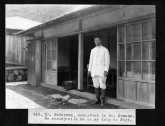 | Keywords: smithsonian institution smithsonianinstitution smithsonian institution archives smithsonianinstitutionarchives man japanese standing outdoors shoji japan monochrome blackandwhite photo border black and white Creator: A.S. Hitchcock Type: black-and-white print, 4.5 x 6.5 inches Date: 1921 Local number: SIA2011-0556 Summary: Photograph of Mr. Nakayama was taken by Hitchcock while he was in Japan collecting specimens. Mr. Nakayama accompanied A.S. Hitchcock to Mt. Fuji. Cite as: SIA RU 000229 - Smithsonian Institution Archives Repository:Smithsonian Institution Archives View more collections from the Smithsonian Institution. Creator: A.S. Hitchcock Type: black-and-white print, 4.5 x 6.5 inches Date: 1921 Local number: SIA2011-0556 Summary: Photograph of Mr. Nakayama was taken by Hitchcock while he was in Japan collecting specimens. Mr. Nakayama accompanied A.S. Hitchcock to Mt. Fuji. Cite as: SIA RU 000229 - Smithsonian Institution Archives Repository:Smithsonian Institution Archives View more collections from the Smithsonian Institution. |