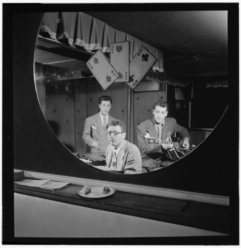 | Keywords: (Portrait of Terry Gibbs, Harry Biss, and Bill (Buddy) De Arango, Three Deuces, New York, N.Y., ca. June 1947) (LOC) (4931768701).jpg Gottlieb William P 1917- photographer Portrait of Terry Gibbs Harry Biss and Bill Buddy De Arango Three Deuces New York N Y ca June 1947 1 negative b w ; 2 1/4 x 2 1/4 in Caption from Down Beat Bill De Arango Group Notes Gottlieb Collection Assignment No 105 Reference print available in Music Division Library of Congress Purchase William P Gottlieb Forms part of William P Gottlieb Collection Library of Congress In Small combo jazz progresses great vibist sparks the De Arango 5; Caplan Most Music Makers dug Down Beat v 14 no 13 June 18 1947 p 17 Subjects Gibbs Terry 1924- Biss Harry De Arango Bill Buddy Jazz musicians--1940-1950 Guitarists--1940-1950 Percussionists--1940-1950 Pianists--1940-1950 Fifty-second Street New York N Y --1940-1950 Three Deuces Format Portrait photographs--1940-1950 Group portraits--1940-1950 Film negatives--1940-1950 Rights Info Mr Gottlieb has dedicated these works to the public domain but rights of privacy and publicity may apply http //lcweb2 loc gov/diglib/ihas/html/gottlieb/gottlieb-copyright html lcweb2 loc gov/diglib/ihas/html/gottlieb/gottlieb-copyrig Repository negative Library of Congress Prints Photographs Division Washington D C 20540 USA http //hdl loc gov/loc pnp/pp print hdl loc gov/loc pnp/pp print reference print Library of Congress Music Division Washington D C 20540 USA http //loc gov/rr/perform/ loc gov/rr/perform/ Part Of William P Gottlieb Collection DLC 99-401005 General information about the Gottlieb Collection is available at http //lcweb2 loc gov/diglib/ihas/html/gottlieb/gottlieb-home html lcweb2 loc gov/diglib/ihas/html/gottlieb/gottlieb-home html Persistent URL http //hdl loc gov/loc music/gottlieb 01911 hdl loc gov/loc music/gottlieb 01911 Call Number LC-GLB23- 0191<br/> PD-Gottlieb https //www flickr com/photos/library_of_congress/4931768701/ Portrait of Terry Gibbs Harry Biss and Bill Buddy De Arango Three Deuces New York N Y ca June 1947 LOC https //www flickr com/people/8623220 N02 The Library of Congress http //www loc gov/rr/print/195_copr html noknown The Library of Congress Flickr Commons Flickr-no known copyright restrictions The Library of Congress https //flickr com/photos/8623220 N02/4931768701 2015-09-02 00 15 36 pd Photographs by William P Gottlieb |