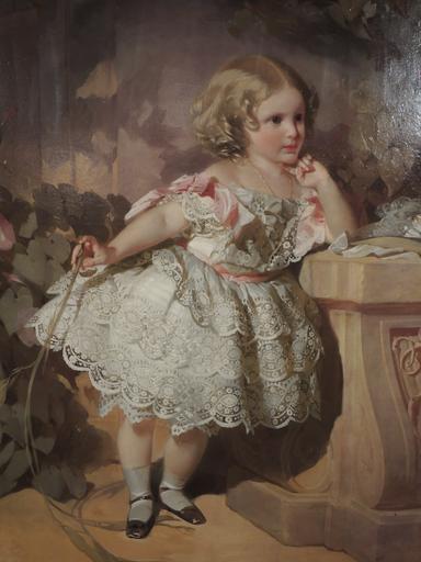 Keywords: Portrait of unknown girl (possibly O.A. Stroganova) by I. Makarov (1880s, GIM) detail.jpg Иван ака ов По т ет неизвестной девочки г афини О А Ст огановой ачало 1860-х Холст масло ГИ Иконог афическое п едположение Т Г Дмит иевой Г П По т ет поступил в музей из соб ания наследников гене ала Алексея Г иго ьевича Ще батова 1776-1848 Анализ данных смешанно-восходящей одословной последнего владельца имения Ще батовых Васильевское Одинцовского айона князя Александ а Г иго ьевича Ще батова 1850-1915 позволяет п едположить что на по т ете изоб ажена его будущая жена Ольга Александ овна Ст оганова 1857-1944 младшая дочь А Г Ст оганова от б ака с Г Д Васильчиковой После 1918 покинула Россию уме ла в эмиг ации во Ф анции В соб ании ГР находится по т ет аботы ака ова поступивший из дво ца Ст огановых т адиционно называющийся Девочка с собакой хотя изоб ажает мальчика ожно утве ждать что это Се гей Александ ович Ст оганов 1852-1923 б ат Ольги Ве оятно по т еты были па ными они совпадают по азме ам own photo by shakko 2012 ачало 1860-х И ака ов <gallery>File Girl with dog by I Makarov 1860s jpg</gallery> Uploaded by Shakko/Photos Portraits of children by Ivan Makarov House of Stroganov 19th-century portraits in the Moscow State Historical Museum Ivan Makarov 2012 exhibition Pushkin museum 1860s portraits of Russia female 1860s portrait paintings Portraits of unknown children 1860 Portrait paintings of unidentified women of Russia House of Tcherbatov PD-Art