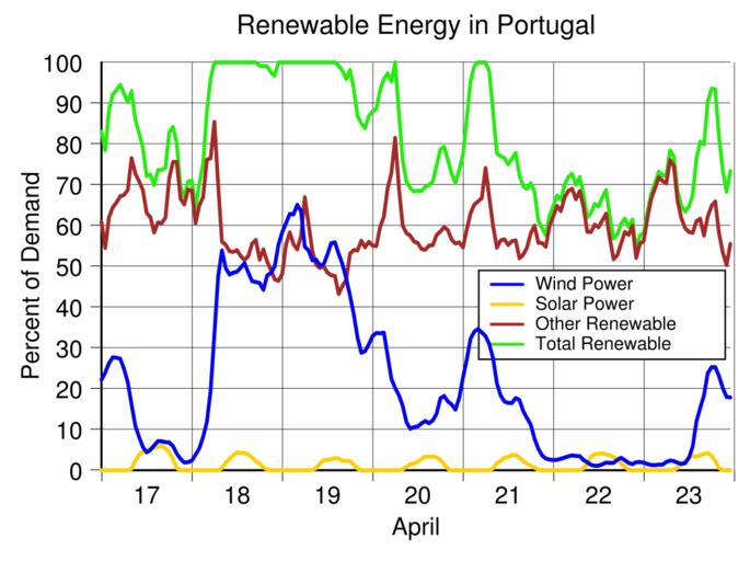 | Keywords: Portugal renewable energy production April 17-23 2016.svg translate yes en For over half of the week of May 7-13 2016 all of the electricity used in Portugal was generated from renewable energy A peak of 147 of demand was produced from renewable energy from 6 to 7 am on May 9 Excess electricity was exported when generation exceeded 100 of demand Data source https //transparency entsoe eu/generation/r2/actualGenerationPerProductionType/show entsoe 2016-07-12 own Delphi234 other versions Generated with Wikimedia SVG Chart SVG Chart/box cc-zero Solar energy in Portugal Wind power in Portugal Renewable energy in Portugal May 2016 in Portugal |