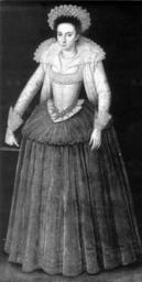 Keywords: blackandwhite monochrome costume gown black and white Arbella Stuart (or "Arabella" and/or "Stewart") (1575 - 27 September 1615) was an English Renaissance noblewoman who was for some time considered a possible successor to Queen Elizabeth I on the English throne. Arbella Stuart was a direct descendant of King Henry VII of England. As the only child of Charles Stuart, Earl of Lennox and Elizabeth Cavendish, she was a grandchild of Matthew Stewart, 4th Earl of Lennox and Margaret Douglas, who was, in turn, the daughter of Margaret Tudor, widow of James IV of Scotland, mother of James V of Scotland, and daughter of England's Henry VII. Margaret Douglas was the product of Margaret Tudor's second marriage, to Archibald Douglas, 6th Earl of Angus. Arbella's paternal grandparents, the 4th Earl of Lennox and Margaret Douglas, had two sons: Arbella's father Charles and his older brother, Henry Stuart, Lord Darnley, who became the second husband of Mary I of Scotland, also called Mary, Queen of Scots, and the father of James I of Great Britain. Arbella's maternal grandparents were Sir William Cavendish and Bess of Hardwick. In her final days, as a prisoner in the Tower of London, Lady Arabella Seymour (her married name), refusing to eat, fell ill, and died on 27 September 1615. She was buried in Westminster Abbey on 29 September 1615. She did not aspire to the English throne. Arbella's father died in 1576 when she was still an infant. She was raised by her mother Elizabeth Cavendish until 1582.[2] The death of her mother left seven-year-old Arbella an orphan, whereupon she became the ward of William Cecil, 1st Baron Burghley. During most of her childhood she lived in the protective isolation of Hardwick Hall with her maternal grandmother, the redoubtable Bess of Hardwick, who had been married in 1568 to George Talbot, 6th Earl of Shrewsbury. There were, apparently, periodic visits to the court of Elizabeth I of England and to London, including one that lasted for a few years, from September 1589 to July 1592. Historian David Durant has suggested that, during this period, "In effect Bess was moving the operational centre of her business empire from Derbyshire to London".[3] An extant note in French, written to Lord Burghley in Arbella's Italic hand and addressed on the eve of the Spanish Armada battles, was dated 13 July 1588 and "postmarked" from the Talbots' Coleman Street Residence in London. It is certain proof of the London visits.[4] About 1589, one "Morley" became Arbella's "attendant" and "reader," as reported in a dispatch from Bess of Hardwick to Lord Burghley, dated 21 September 1592.[5] Bess recounts "Morley's" service to Arbella over "the space of three years and a half." She also notes he requested a lifetime stipend from Arbella based on the fact he had "been much damnified by leaving the University"; this has led to speculation that 'Morley' was the poet Christopher Marlowe. For some time before 1592, Arbella was considered one of the natural candidates for succession to the English crown, after her cousin, Queen Elizabeth I (Marshall, 601). However, between the end of 1592 and the spring of 1593, the influential Cecils, Elizabeth's Secretaries of State Lord Burghley and his son Sir Robert Cecil) turned their attention away from Arbella towards James VI of Scotland, regarding him as a preferable successor.[7] Burghley wrote "If my hand were free from pain I would not commit this much to any other man's hand".[citation needed] In 1603, after James's ascension to the English throne, there was a plot (in which Sir Walter Raleigh was alleged to being involved) to overthrow him and put Arbella on the throne; but when she was invited to participate by agreeing in writing to Philip III of Spain, she reported the plan to James. Owing to Arbella's status as a possible heir to the throne, there was discussion of an appropriate marriage for her throughout her childhood. It would have suited the Roman Catholic Church for her to marry a member of the House of Savoy and then take the English throne. A marriage was also mooted with Ranuccio, eldest son of Alexander Farnese, Duke of Parma and Maria of Portugal. According to the Curiosities of Literature by Isaac D'Israeli, this scheme originated with the Pope, who eventually settled on his own brother, a cardinal, as a suitable husband for Arbella; the Pope defrocked his brother, freeing him to marry "Arbelle" (as the Italians spelled her name) and thus claim the Kingdom of England. Nothing came of this plan, and in fact there is no direct evidence that Arbella was either a believing Catholic or a Protestant. In the closing months of Elizabeth's reign, Arbella fell into trouble via reports that she intended to marry Edward Seymour, a member of the prominent Seymour family.[citation needed] This was reported to the Queen by the supposed groom's grandfather, Edward Seymour, 1st Earl of Hertford. Arbella denied having any intention of marrying without the Queen's permission, which she would have required for any marriage to be legal. In 1588, it was proposed to James VI of Scotland that Esmé Stuart, 2nd Duke of Lennox should be married to Arbella, but nothing seems to have come of this suggestion.[8] In 1604, Sigismund III Vasa, King of Poland sent an ambassador to England to ask for Arbella to be his queen. This offer was rejected.[citation needed] There are some indications that Arbella tried to elope in about 1604 and that she fell out of favour with King James I as a result; she was certainly out of sight until 1608, when she was restored to the King's good graces In 1610, Arbella, who was fourth in line to the English throne, was in trouble again for planning to marry William Seymour, sixth in line, grandson of Lady Catherine Grey, a younger sister of Lady Jane Grey and a granddaughter of Mary Tudor, younger sister of King Henry VIII and Arbella's ancestress, Margaret Tudor. Although the couple at first denied that any arrangement exi