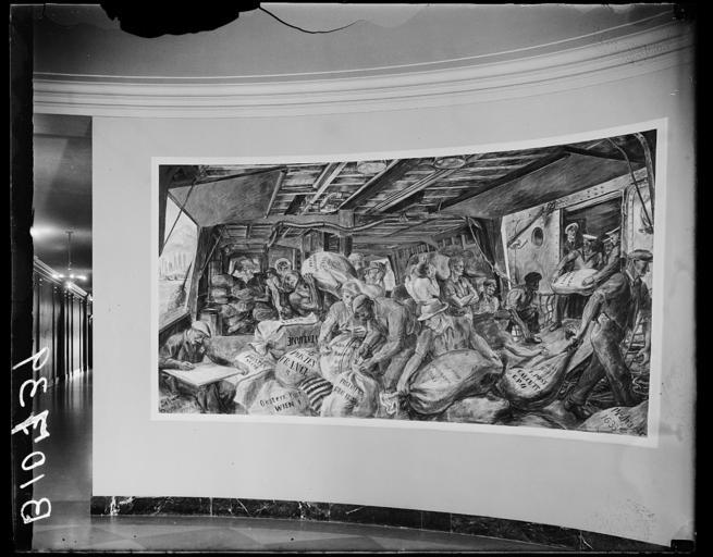 | Keywords: Post Office Dept. Mural, file mural 33352v.jpg en Title Post Office Dept Mural file mural Creator s Harris Ewing photographer Date Created/Published 1936 Medium 1 negative glass ; 4 x 5 in or smaller Reproduction Number LC-DIG-hec-33352 digital file from original negative Rights Advisory No known restrictions on publication Call Number LC-H2- B-10739 P P Repository Library of Congress Prints and Photographs Division Washington D C 20540 USA http //hdl loc gov/loc pnp/pp print<br>Notes Title from unverified caption data on negative or negative sleeve Date based on date of negatives in same range Gift; Harris Ewing Inc 1955 General information about the Harris Ewing Collection is available at http //hdl loc gov/loc pnp/pp hec Mural Unloading the Mail 1935 by Reginald Marsh<br>http //livingnewdeal org/projects/ariel-rios-federal-building-marsh-murals-washington-dc/ Ariel Rios Federal Building Marsh Murals “ Washington DC at The Living New Deal<br>Reginald Marsh painted two 6 ™7 ³ x 12 ™6 ³ murals for the Ariel Rios Federal Building Sorting the Mail and Unloading the Mail They were painted in 1935 with funds from the Treasury Section of Fine Arts 1936 LOC-image hec 33352 Harris Ewing photographer PD-Harris-Ewing other versions Ariel Rios Federal Building murals Uploaded with UploadWizard Reginald Marsh |