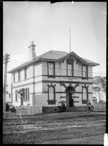 | Keywords: blackandwhite monochrome photo border outdoor building architecture black and white Post and telegraph office at Ngaruawahia, 1910. Photograph taken by R S F, probably storekeeper Robert Stanley Fleming. Inscriptions: Inscribed - Photographer's title on negative -bottom right: Post Office Ngaruawahia 20R.S.F Protd 1.8.10. Quantity: 1 b&w original negative(s). Physical Description: Dry plate glass negative 4.5 x 6.5 inches Fleming, Robert Stanley, fl 1910-1915. Post and telegraph office, Ngaruawahia - Photograph taken by Robert Stanley Fleming. Price, William Archer, 1866-1948 :Collection of post card negatives. Ref: 1/2-000952-G. Alexander Turnbull Library, Wellington, New Zealand. natlib.govt.nz/records/22778671 Post and telegraph office at Ngaruawahia, 1910. Photograph taken by R S F, probably storekeeper Robert Stanley Fleming. Inscriptions: Inscribed - Photographer's title on negative -bottom right: Post Office Ngaruawahia 20R.S.F Protd 1.8.10. Quantity: 1 b&w original negative(s). Physical Description: Dry plate glass negative 4.5 x 6.5 inches Fleming, Robert Stanley, fl 1910-1915. Post and telegraph office, Ngaruawahia - Photograph taken by Robert Stanley Fleming. Price, William Archer, 1866-1948 :Collection of post card negatives. Ref: 1/2-000952-G. Alexander Turnbull Library, Wellington, New Zealand. natlib.govt.nz/records/22778671 |