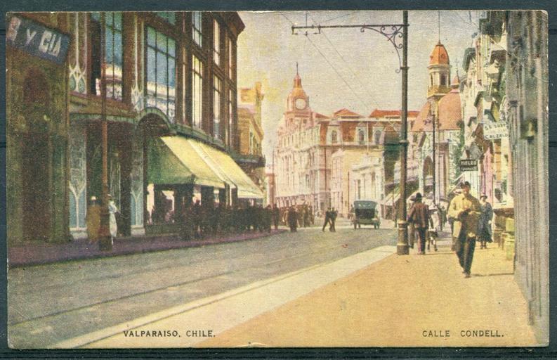 | Keywords: Postal Valparaíso, calle Condell, princicpios siglo 20.JPG es Se ve la calle Condell hacia la plaza Victoria principios del siglo XX Unknown Unknown author PD-Chile Uploaded with UploadWizard Postcards of Valparaíso Calle Condell Iglesia del Espíritu Santo Valparaíso |