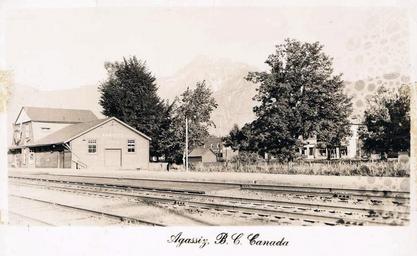 Keywords: snow outdoor "Agassiz, B. C. Canada" Post Card. Made In Canada by J.C. Walker, Vancouver B.C. View looking SE from Evergreen Drive at the Canadian Pacific Railway tracks in Agassiz, BC. C.P.R. station and freight shed at Agassiz built 1893. Extant as the Agassiz-Harrison Museum. "Agassiz, B. C. Canada" Post Card. Made In Canada by J.C. Walker, Vancouver B.C. View looking SE from Evergreen Drive at the Canadian Pacific Railway tracks in Agassiz, BC. C.P.R. station and freight shed at Agassiz built 1893. Extant as the Agassiz-Harrison Museum. |