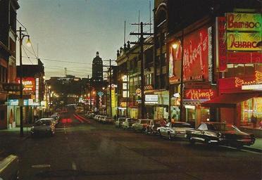 | Keywords: road city architecture outdoor night intersection "CHINATOWN AT NIGHT Vancouver, British Columbia, Canada Vancouver's Chinatown is Canada's largest and rivals that of San Francisco. Centered on East Pender Street, between Carrall and Main, this colorful section of the city caters to tourists from all over the world. Fine traditional foods, imported oriental merchandise and souvenirs are available to the visitor." Photo by Dorse McTaggart. Majestic Post Card. A Traveltime Product. Published by Natural Color Productions Ltd., Richmond, B.C. Printed in Canada by Lawson Graphics Pacific Limited, Vancouver, British Columbia. Chinatown at night on 100-block East Pender Street, Vancouver, BC. "CHINATOWN AT NIGHT Vancouver, British Columbia, Canada Vancouver's Chinatown is Canada's largest and rivals that of San Francisco. Centered on East Pender Street, between Carrall and Main, this colorful section of the city caters to tourists from all over the world. Fine traditional foods, imported oriental merchandise and souvenirs are available to the visitor." Photo by Dorse McTaggart. Majestic Post Card. A Traveltime Product. Published by Natural Color Productions Ltd., Richmond, B.C. Printed in Canada by Lawson Graphics Pacific Limited, Vancouver, British Columbia. Chinatown at night on 100-block East Pender Street, Vancouver, BC. |