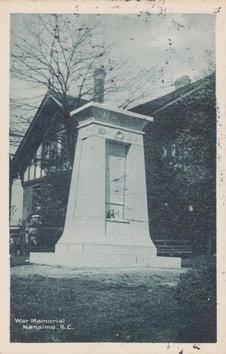 | Keywords: outdoor "War Memorial, Nanaimo, B.C." Post Card. Photogelatine Engraving Co. Ltd., Ottawa. Dallas Square Park Cenotaph, 85 Church Street (at Anchor Way & Front Street), Nanaimo, BC on Vancouver Island. Built in 1921; extant. "War Memorial, Nanaimo, B.C." Post Card. Photogelatine Engraving Co. Ltd., Ottawa. Dallas Square Park Cenotaph, 85 Church Street (at Anchor Way & Front Street), Nanaimo, BC on Vancouver Island. Built in 1921; extant. | ||||