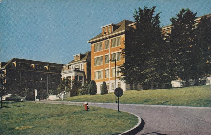 | Keywords: outdoor architecture building "ESSONDALE PROVINCIAL HOSPITAL AND REST HOME Essondale, British Columbia This hospital is noted across Canada for its excellent rehabilitation work. It is situated 15 miles east of Vancouver in restful and spacious surroundings." Pub. by Natural Color Productions, Ltd., Vancouver, B.C. Printed in U.S.A.  Riverview Hospital, 2601 Lougheed Highway, Coquitlam, BC. Founded in 1913.   The Acute Psychopathic Unit, later called Centre Lawn, opened in 1924.  Blog: essondale.blogspot.ca/ "ESSONDALE PROVINCIAL HOSPITAL AND REST HOME Essondale, British Columbia This hospital is noted across Canada for its excellent rehabilitation work. It is situated 15 miles east of Vancouver in restful and spacious surroundings." Pub. by Natural Color Productions, Ltd., Vancouver, B.C. Printed in U.S.A.  Riverview Hospital, 2601 Lougheed Highway, Coquitlam, BC. Founded in 1913.   The Acute Psychopathic Unit, later called Centre Lawn, opened in 1924.  Blog: essondale.blogspot.ca/ |
