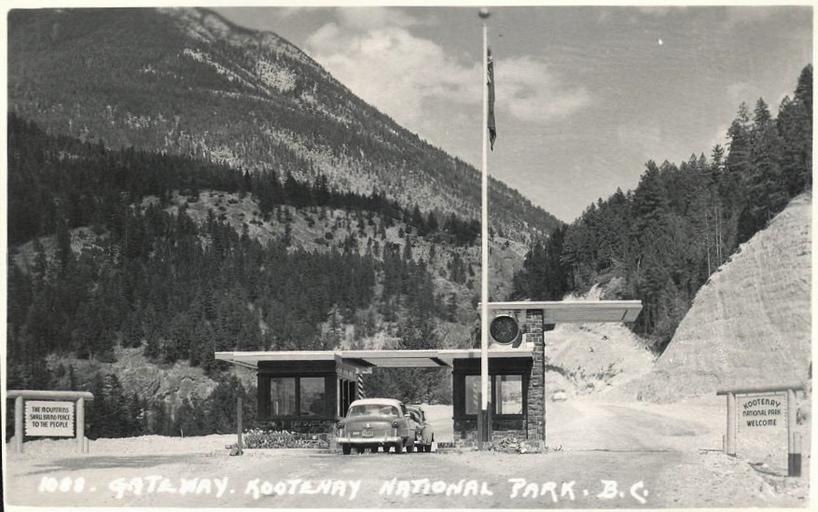 Keywords: outdoor "1088. Gateway. Kootenay National Park. B.C." Byron Harmon, Banff, Canada. Radium Hot Springs, BC. Located on the Kootenay Highway (Hwy. 93) at the new gateway to Kootenay National Park. The park gateway was relocated in 1954 when increased traffic volume to the park caused the old entranceway to be out-grown. This gate has since been demolished. "1088. Gateway. Kootenay National Park. B.C." Byron Harmon, Banff, Canada. Radium Hot Springs, BC. Located on the Kootenay Highway (Hwy. 93) at the new gateway to Kootenay National Park. The park gateway was relocated in 1954 when increased traffic volume to the park caused the old entranceway to be out-grown. This gate has since been demolished. |