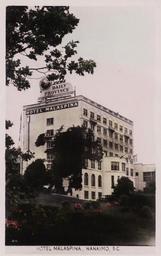 | Keywords: photo border "Hotel Malaspina, Nanaimo, B.C."  Malaspina Hotel, 38 Front Street, Nanaimo, BC on Vancouver Island.  Malaspina Hotel Thomas Stevenson, Manager. An Impressively Good Modern Hotel. Rates from $1.75. Good Coffee Shop, Soda Fountain and Dining Room with Wonderful Historical Murals. Front St. Phone 1400. [1939-45]  Opened 1927. Closed 1984. Demolished 1996. "Hotel Malaspina, Nanaimo, B.C."  Malaspina Hotel, 38 Front Street, Nanaimo, BC on Vancouver Island.  Malaspina Hotel Thomas Stevenson, Manager. An Impressively Good Modern Hotel. Rates from $1.75. Good Coffee Shop, Soda Fountain and Dining Room with Wonderful Historical Murals. Front St. Phone 1400. [1939-45]  Opened 1927. Closed 1984. Demolished 1996. |