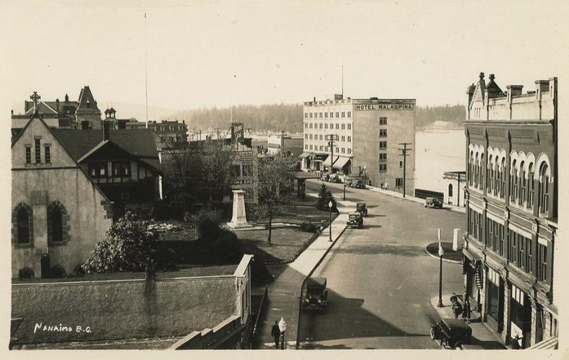 | Keywords: outdoor "Nanaimo B.C." AZO Post Card. Made in Canada.  View looking NE up the 000-block of Church Street towards the intersection at Front Street in Nanaimo, BC on Vancouver Island.  Visible is St. Paul's Anglican Church, the Courthouse, the War Memorial, the Hotel Malaspina and the Hotel Windsor. "Nanaimo B.C." AZO Post Card. Made in Canada.  View looking NE up the 000-block of Church Street towards the intersection at Front Street in Nanaimo, BC on Vancouver Island.  Visible is St. Paul's Anglican Church, the Courthouse, the War Memorial, the Hotel Malaspina and the Hotel Windsor. |