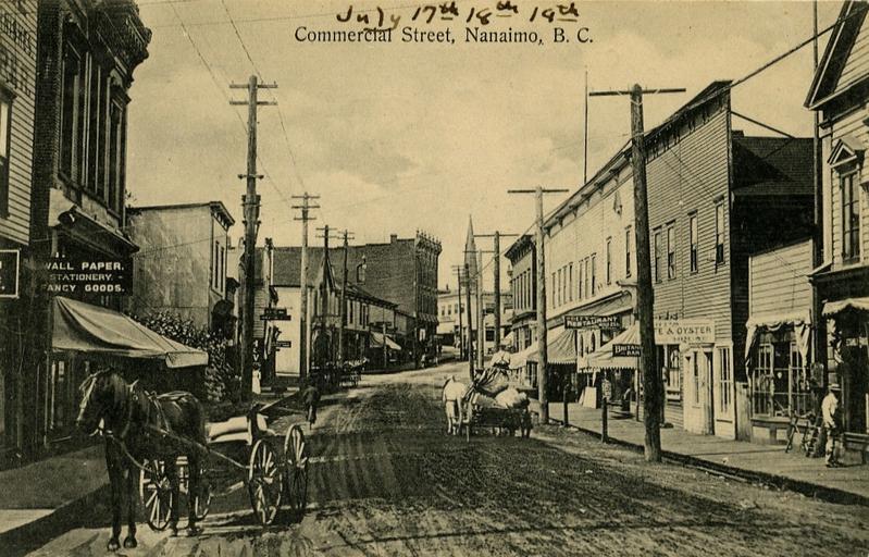 | Keywords: road outdoor vehicle bike photo border skyline "Commercial Street, Nanaimo, B. C." Canadian Souvenir Post Card. Published by G.J. Findley, Nanaimo, B. C. Printed in Germany.  View looking north up Commercial Street from the 000-block in Nanaimo, BC on Vancouver Island. "Commercial Street, Nanaimo, B. C." Canadian Souvenir Post Card. Published by G.J. Findley, Nanaimo, B. C. Printed in Germany.  View looking north up Commercial Street from the 000-block in Nanaimo, BC on Vancouver Island. |