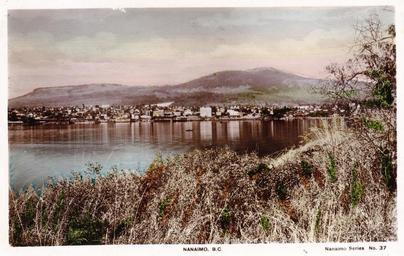 | Keywords: outdoor photo border "Nanaimo, B.C. Nanaimo Series No. 37" Post Card. This is a Real Photograph. Hand Coloured. Copyright Photo by J. T. Cowie. Published by The Camera Products Co., 1731, Dunbar Street, Vancouver, B.C. Made in England.  View looking SW towards the City of Nanaimo, BC from Protection Island. "Nanaimo, B.C. Nanaimo Series No. 37" Post Card. This is a Real Photograph. Hand Coloured. Copyright Photo by J. T. Cowie. Published by The Camera Products Co., 1731, Dunbar Street, Vancouver, B.C. Made in England.  View looking SW towards the City of Nanaimo, BC from Protection Island. |
