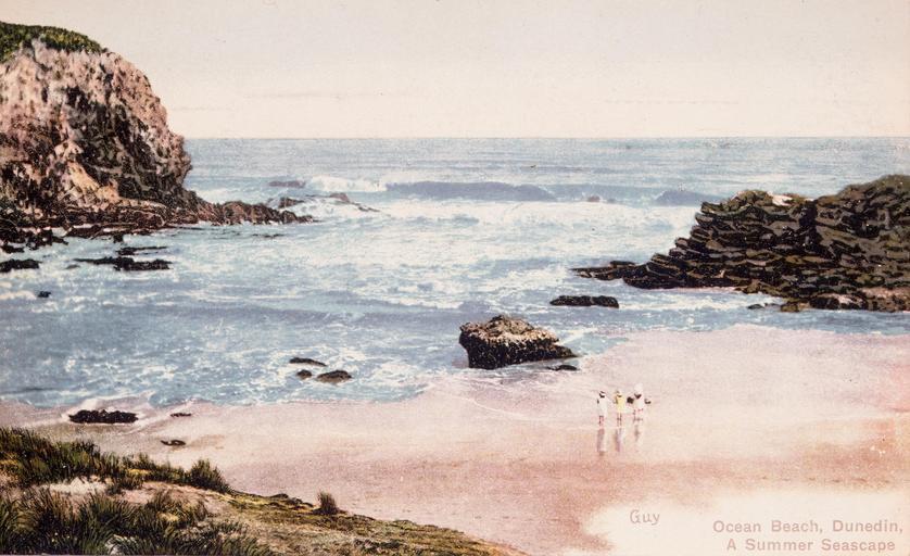 | Keywords: outdoor shore landscape beach coast seaside water ocean Shows view of St Kilda Beach, Dunedin, with rocky outcrops to left and right. There is a group of three small girls in long summer dresses in the right foreground. Inscriptions: Inscribed - Verso - centre left: Dear Joy, This is the beach where we often go to, during the summer. When Father allows you to come here for a holiday we will take you to this beach. Much love from cousin Minnie.centre: [Note from Herbert].. Quantity: 1 colour photo-mechanical print(s) on postcard.. Physical Description: Coloured photolithograph 89 x 140 mm. Provenance: Donated by Mr Charles Taylor in 1981. Taylor, Charles, fl 1981. [Postcard]. Ocean Beach, Dunedin, a summer seascape / [photographer] Guy. [ca 1910].. [Postcard album of cards collected by Joye Eggers / Taylor. 1905-1970s].. Ref: Eph-B-POSTCARD-Vol-8-046-2. Alexander Turnbull Library, Wellington, New Zealand. natlib.govt.nz/records/22841489 Shows view of St Kilda Beach, Dunedin, with rocky outcrops to left and right. There is a group of three small girls in long summer dresses in the right foreground. Inscriptions: Inscribed - Verso - centre left: Dear Joy, This is the beach where we often go to, during the summer. When Father allows you to come here for a holiday we will take you to this beach. Much love from cousin Minnie.centre: [Note from Herbert].. Quantity: 1 colour photo-mechanical print(s) on postcard.. Physical Description: Coloured photolithograph 89 x 140 mm. Provenance: Donated by Mr Charles Taylor in 1981. Taylor, Charles, fl 1981. [Postcard]. Ocean Beach, Dunedin, a summer seascape / [photographer] Guy. [ca 1910].. [Postcard album of cards collected by Joye Eggers / Taylor. 1905-1970s].. Ref: Eph-B-POSTCARD-Vol-8-046-2. Alexander Turnbull Library, Wellington, New Zealand. natlib.govt.nz/records/22841489 |
