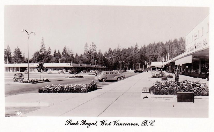 Keywords: snow outdoor road photo border "Park Royal, West Vancouver, B. C." Post Card. Made in Canada by J.C. Walker, Vancouver, B.C. Park Royal Shopping Centre, West Vancouver, BC. Canada's first shopping mall. Opened in September 1950 with Woodward's department store as its main anchor tenant. "Park Royal, West Vancouver, B. C." Post Card. Made in Canada by J.C. Walker, Vancouver, B.C. Park Royal Shopping Centre, West Vancouver, BC. Canada's first shopping mall. Opened in September 1950 with Woodward's department store as its main anchor tenant. |