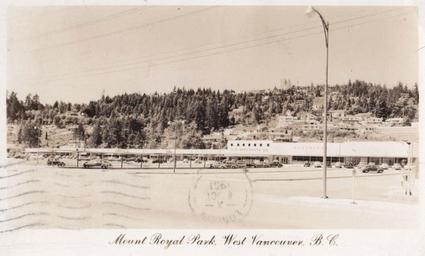Keywords: outdoor snow monochrome "Mount Royal Park [sic], West Vancouver, B. C." Post Card. Made in Canada by J.C. Walker, Vancouver, B.C. Park Royal Shopping Centre, West Vancouver, BC. Canada's first shopping mall. Opened in September 1950 with Woodward's department store as its main anchor tenant. "Mount Royal Park [sic], West Vancouver, B. C." Post Card. Made in Canada by J.C. Walker, Vancouver, B.C. Park Royal Shopping Centre, West Vancouver, BC. Canada's first shopping mall. Opened in September 1950 with Woodward's department store as its main anchor tenant. |