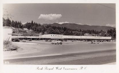 Keywords: photo border outdoor "Park Royal, West Vancouver, B. C." Post Card. Made in Canada by J. C. Walker. Park Royal Shopping Centre, West Vancouver, BC. Canada's first shopping mall. Opened in September 1950 with Woodward's department store as its main anchor tenant. "Park Royal, West Vancouver, B. C." Post Card. Made in Canada by J. C. Walker. Park Royal Shopping Centre, West Vancouver, BC. Canada's first shopping mall. Opened in September 1950 with Woodward's department store as its main anchor tenant. |