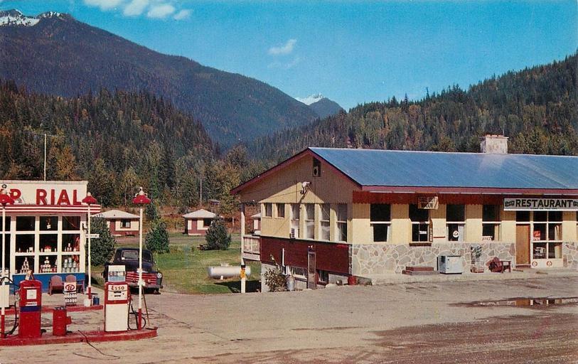 Keywords: outdoor building architecture chalet "THE SKYLINE Craigellachie, B.C. Phone 836-2217 On the Trans Canada Highway 26 miles west of Revelstoke—Modern Motel, Esso Service, Coffee Shop and Dining Room, Trailer Court, Playgrounds—Challenging Fishing Streams in beautiful mountain settings—Site of the Last Spike—Come and take in the famous Annual Salmon Run." SC9238—Color Photo by Shuswap Photohouse, Sicamous, B.C. Natural Color by Mike Roberts U.S.A. "THE SKYLINE Craigellachie, B.C. Phone 836-2217 On the Trans Canada Highway 26 miles west of Revelstoke—Modern Motel, Esso Service, Coffee Shop and Dining Room, Trailer Court, Playgrounds—Challenging Fishing Streams in beautiful mountain settings—Site of the Last Spike—Come and take in the famous Annual Salmon Run." SC9238—Color Photo by Shuswap Photohouse, Sicamous, B.C. Natural Color by Mike Roberts U.S.A. |