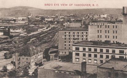 Keywords: architecture outdoor text "Bird's Eye View of Vancouver, B. C." Post Card. Printed in Germany. View looking east over the Waterfront and Canadian Pacific railyard in Vancouver, BC. "Bird's Eye View of Vancouver, B. C." Post Card. Printed in Germany. View looking east over the Waterfront and Canadian Pacific railyard in Vancouver, BC. |