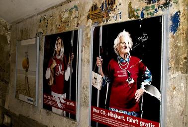 Keywords: poster wall vandalism vintage old degenerated damaged advertising posters people grandma woman