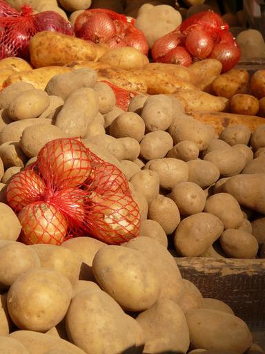 Keywords: potatoes onion vegetables potato food ingredient eat market