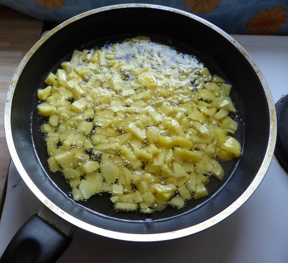Keywords: Potatoes-onions-egg-1.jpg de Kartoffeln in einer Pfanne mit heißem Öl 2016-03-17 16 40 34 own MartinThoma other versions cc-zero Taken with Panasonic Lumix DMC-TZ41 Images by Martin Thoma/Food Potato dishes of Germany