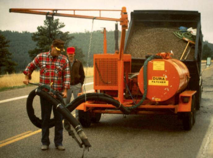 Keywords: Pothole spray-injection equipment.png en Spray-injection device for pothole repair ”truck and trailer unit 2014-02-18 14 02 40 http //www fhwa dot gov/publications/research/infrastructure/pavements/ltpp/99168/99168 pdf T P Wilson and A R Romine PD-USGov Potholes Asphalt deterioration Asphalt roads Uploaded with UploadWizard |
