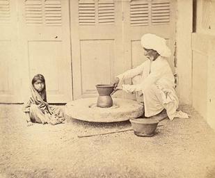 View Original: | Potter_at_work_at_his_wheel_and_a_young_girl_is_watching_in_Pune,_Maharashtra_-_1873.jpg (858x712) | |||