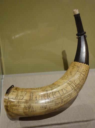 Keywords: Powder horn, Captain Thaddeus Mead, with map of his military service in the French and Indian War, August 15, 1758 - Albany Institute of History and Art - DSC07966.JPG en Exhibit in the Albany Institute of History and Art Albany New York USA This artwork is in the public domain because the artist died more than 70 years ago Photography was permitted in the museum without restriction 2013-06-13 10 32 44 own Daderot cc-zero Miscellany in the Albany Institute of History and Art Uploaded with UploadWizard Powder horns French and Indian War |