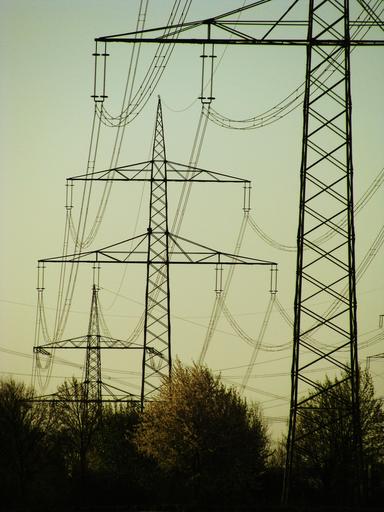 Keywords: power line power poles landscape technology high voltage evening germany baden württemberg