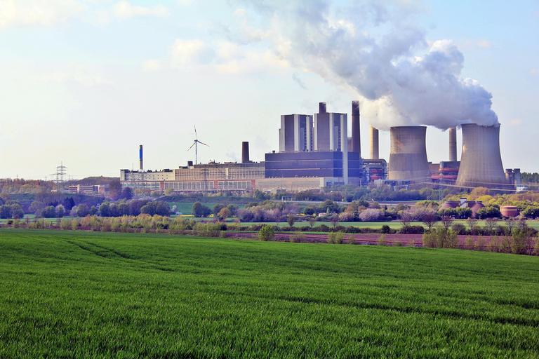 Keywords: power plant clouds industry chimney factory current environment air steam architecture nature and environment carbon pinwheel meadow arable sky germany