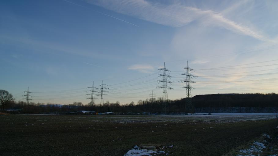Keywords: power poles power lines landline sunset landscape nature