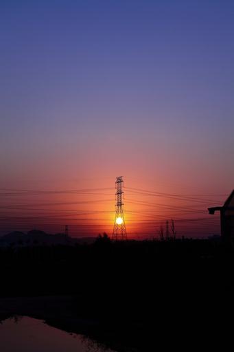 Keywords: power sunset twilight transmission line pylons electric tower