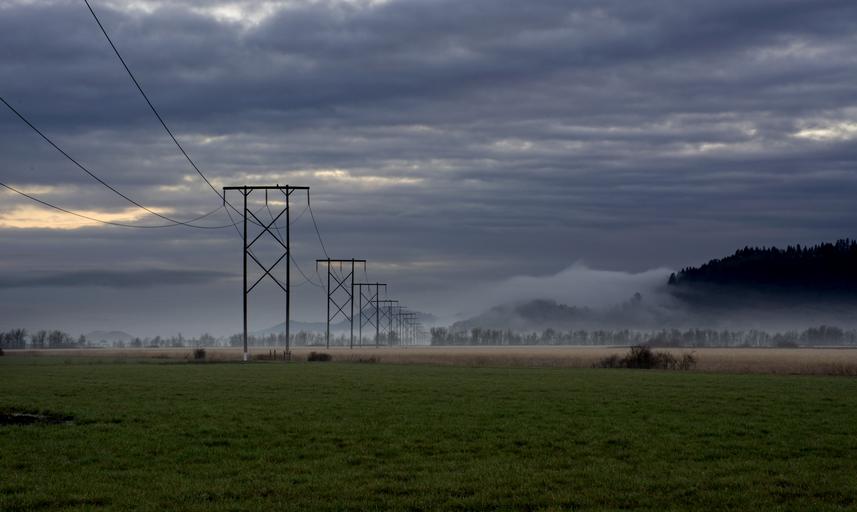 | Keywords: power wires morning electric electricity cable energy equipment technology industry line voltage industrial supply connection man light wiring nature intersection dawn clouds fog hills landscape scene quiet distance far away long country rural |