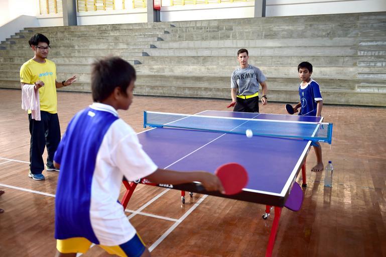 Keywords: PP15 Sports Day held in Kiribati 150603-N-HY254-146.jpg en 150603-N-HY254-146 TARAWA Kiribati June 3 2015 Sgt 1st Class Travis Shultz from Corunna Indiana and currently assigned to the 84th Civil Affairs Battalion plays a game of table tennis with youth members of the Kiribati National Table Tennis Team at the Betio Sports Complex during Pacific Partnership 2015 Now in its 10th iteration Pacific Partnership is the largest annual multilateral humanitarian assistance and disaster relief preparedness mission conducted in the Indo-Asia-Pacific region While training for crisis conditions Pacific Partnership missions have provided medical care to approximately 270 000 patients and veterinary services to more than 38 000 animals Additionally PP15 has provided critical infrastructure development to host nations through the completion of more than 180 engineering projects U S Navy photo by Chief Mass Communication Specialist Jonathan R Kulp/Released 2015-06-03 Chief Petty Officer Jonathan Kulp https //www dvidshub net/image/1972646 150603-N-HY254-146 2015-06-03 14 10 TARAWA KI PD-USGov-Military-Navy Pacific Partnership 2015 Images from DoD uploaded by Fæ |