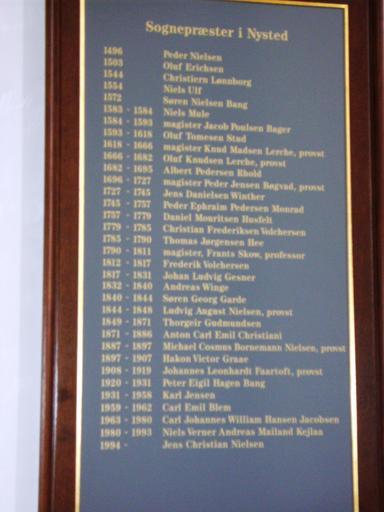 Keywords: Præstetavle.JPG Nysted Kirke præstetavle Danmark Own 2008-01-27 Erik Damskier Nysted Kirke