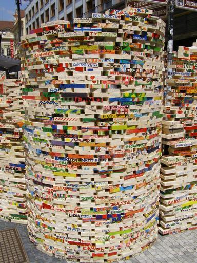 MAKE A MEME View Large Image prague artwork modern charity tower painted clogs children painting wooden blocks good purpose children paint build stack