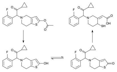 | Keywords: Prasugrel activation.svg prasugrel top left to its active metabolite top right The first and last steps are hydrolyses while the two structures at the bottom are tautomer s of each other own Anypodetos 2011-12-24 File Prasugrel active metabolite svg only the active metabolite BKchem 001 -check Prasugrel Metabolism Cc-zero |