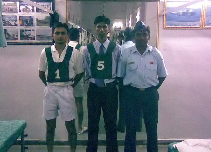 | Keywords: Pratik.jpg en Picture shows three candidates from 12 SSB Bangalore Naval Board Middle chest no 5 Pratik mahajan In airforce uniform LAC thongaBalaji Chest no 1 wearing GTO dress whos is under Airforce training It shows that the service candidate also comming for SSB India from my cam 12 SSB bangalore Modifications noise reduced using NeatImage Pratik Mahajan 2009-04-15 this is my file Soldiers of India | ||||