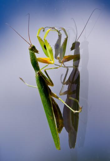 Keywords: praying mantis mantid mantis insect large green reflection window wild queensland australia