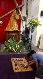 Keywords: Preparing carpet for Semana Santa in Antigua, Guatemala.JPG en Guys preparing a carpet for Semana Santa in the church San Francisco in Antigua Guatemala Antigua's carpets are made of colorized sawdust and very famous throughout the country 2016-03-18 11 20 04 own Erik Albers other versions 14 554014 -90 729887 cc-zero 2016 in Antigua Guatemala Sawdust carpets Holy Week in Antigua Guatemala Holy Week in Antigua Guatemala 2016 San Francisco Church Antigua Guatemala