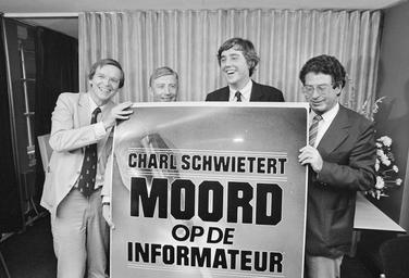 | Keywords: politiek politics blackandwhite monochrome black and white Nationaal Archief  Beschrijving:  Presentatie boek "Moord op informateur" van Charl Schwietert; Vlnr Schwietert, Van Agt , Nijpels en Van Thijn. Zij kregen allen een exemplaar  Datum:  1 september 1982  Bestanddeelnummer NL-HaNA_Anefo_932-3054  Vervaardiger: Croes, Rob / Anefo  URL:  beeldbank.nationaalarchief.nl/na:col1:dat312052  Voor meer informatie over het Nationaal Archief: www.nationaalarchief.nl   Voor meer foto's uit deze en andere collecties, bezoek onze Beeldbank:, www.beeldbank.nationaalarchief.nl  U kunt ons helpen onze kennis van de fotocollecties te verrijken door tags en commentaren toe te voegen. Herkent u mensen of locaties of heeft u een bijzonder verhaal te vertellen bij één van de foto's, laat dan een reactie achter (als u ingelogd bent bij Flickr) of stuur een mailtje naar: flickrthecommons@nationaalarchief.nl Nationaal Archief  Beschrijving:  Presentatie boek "Moord op informateur" van Charl Schwietert; Vlnr Schwietert, Van Agt , Nijpels en Van Thijn. Zij kregen allen een exemplaar  Datum:  1 september 1982  Bestanddeelnummer NL-HaNA_Anefo_932-3054  Vervaardiger: Croes, Rob / Anefo  URL:  beeldbank.nationaalarchief.nl/na:col1:dat312052  Voor meer informatie over het Nationaal Archief: www.nationaalarchief.nl   Voor meer foto's uit deze en andere collecties, bezoek onze Beeldbank:, www.beeldbank.nationaalarchief.nl  U kunt ons helpen onze kennis van de fotocollecties te verrijken door tags en commentaren toe te voegen. Herkent u mensen of locaties of heeft u een bijzonder verhaal te vertellen bij één van de foto's, laat dan een reactie achter (als u ingelogd bent bij Flickr) of stuur een mailtje naar: flickrthecommons@nationaalarchief.nl |