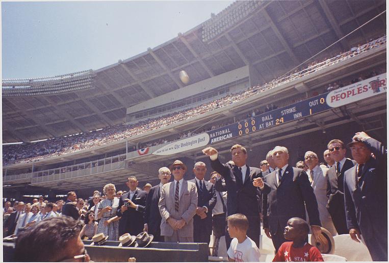 | Keywords: President attends the 32nd All-Star Baseball Game, throws out first ball. Speaker of the House John W. McCormack... - NARA - 194250.tif Scope and content General notes 194250 Local identifier President 1963-1969 Johnson White House Photograph Office 1963 - 1969 Most Recent <br /> President 1961-1963 Kennedy Office of the Military Aide 01/20/1961 - 11/22/1963 Predecessor Creator Cecil W Stoughton John F Kennedy Library NLJFK Columbia Point Boston MA 02125-3398 1962-07-10 Record group Collection JFK-WHP White House Photographs 12/19/1960 - 03/11/1964 Record group ARC 1177 Cecil Stoughton's White House Photographs compiled 01/29/1961 - 12/31/1963 Series ARC 194234 File unit File unit ARC Variant control numbers NAIL Control Number NLK-WHP-ST-STC15562 yes Other versions <gallery> File President attends the 32nd All-Star Baseball Game throws out first ball Speaker of the House John W McCormack - NARA - 194250 jpg</gallery> NARA-cooperation PD-USGov Files by User BrokenSphere 1962 in Major League Baseball Ceremonial first pitch Major League Baseball Major League Baseball All-Star Game John F Kennedy in 1962 1962 in Washington D C Lyndon B Johnson in 1962 0710 Photographs by Cecil W Stoughton John William McCormack NARA TIF images with categorized JPGs Ceremonial first pitch |