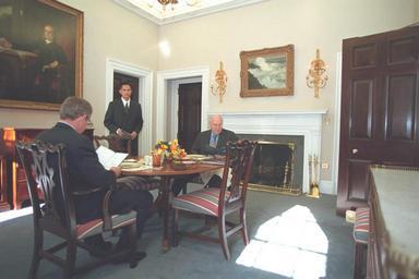 | Keywords: u.s. national archives usnationalarchives vice president dick cheney vicepresidentdickcheney vice president richard cheney vicepresidentrichardcheney nara:arcid=18545785 indoor building architecture room These images have been released in response to a FOIA request, case number 2014-0012-F, received by the National Archives. For more information on these images, please visit Researching Vice Presidential Materials. These photos will be available in the National Archives Catalog in July 2015. Local Identifier: V74-07A Created By: President (2001-2009 : Bush). Office of Management and Administration. Office of White House Management. Photography Office. 1/20/2001-1/20/2009 From: Collection: Vice Presidential Records of the Photography Office (George W. Bush Administration), 1/20/2001 - 1/20/2009 Contact: Presidential Materials Division (LM) National Archives Building 7th and Pennsylvania Avenue NW Washington, DC 20408 Phone: 202-357-5200 Fax: 202-357-5939 Production Dates: 1/25/2001 Persistent URL: catalog.archives.gov/id/18545785 Access Restrictions: Unrestricted Use Restrictions: Unrestricted These images have been released in response to a FOIA request, case number 2014-0012-F, received by the National Archives. For more information on these images, please visit Researching Vice Presidential Materials. These photos will be available in the National Archives Catalog in July 2015. Local Identifier: V74-07A Created By: President (2001-2009 : Bush). Office of Management and Administration. Office of White House Management. Photography Office. 1/20/2001-1/20/2009 From: Collection: Vice Presidential Records of the Photography Office (George W. Bush Administration), 1/20/2001 - 1/20/2009 Contact: Presidential Materials Division (LM) National Archives Building 7th and Pennsylvania Avenue NW Washington, DC 20408 Phone: 202-357-5200 Fax: 202-357-5939 Production Dates: 1/25/2001 Persistent URL: catalog.archives.gov/id/18545785 Access Restrictions: Unrestricted Use Restrictions: Unrestricted |